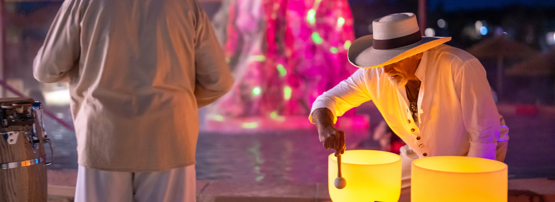 Thermal Turnout is our weekly after-dark experience. Held every Wednesday from 8:00 to 9:00 PM at the Tufa Turnout roman-style pool, this unique soak features an immersive light and music show that transforms the space into something magical. As visuals ripple across the steam and sound surrounds you, you’re invited to float under the stars and fully unwind. No sign-up is required—just show up, soak, and let the evening carry you away.